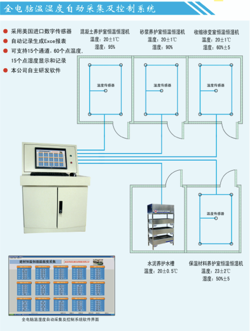 產(chǎn)品說(shuō)明:將所有養(yǎng)護(hù)室、實(shí)驗(yàn)室的溫濕度數(shù)據(jù)采集到電腦軟件內(nèi),分室集中顯示。數(shù)據(jù)自動(dòng)記錄,記錄時(shí)間可自行設(shè)置,能夠生成溫濕度波動(dòng)曲線,自動(dòng)保存?呻S時(shí)調(diào)閱歷史數(shù)據(jù),并可導(dǎo)出電子表格并打印。