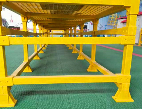 以玻璃鋼材質的板材作為平臺的操作面,模壓型材作為平臺的基座,拉擠型材作為平臺的支撐架。下面為大家放一些玻璃鋼平臺安裝完成圖