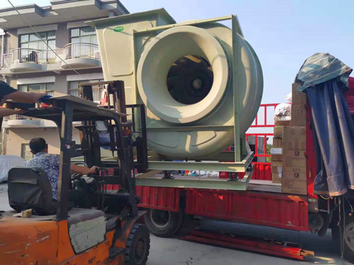 作為廢氣處理系統中非常關鍵的設備之一,玻璃鋼離心風機是主要的輸送設備,在工作時風機的葉輪高速轉動。風機的型號越大,單位時間內產生的風量也越大,同時風機的體積也越大。下面是一些大型玻璃鋼風機的運輸裝卸圖。