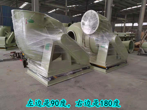 在風機的所有方向中,90°和180°是兩種使用最多的方向。其中90°的風機出風口向上,180°的風機出風口平吹。在章節(jié)玻璃鋼離心風機方向中介紹過,風機的方向是以風機中心點作水平線,風機出風口與水平線的角度就是風機的角度。從軸承箱側(cè)或皮帶輪側(cè)正視,風機的選擇方向為順時針,則風機為右旋,逆時針則風機為左旋。下面是90°與180°玻璃鋼離心風機圖展示。