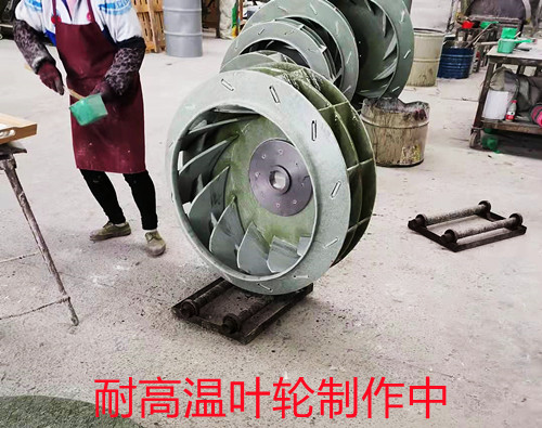 比如本公司生產的普通風機葉輪使用的是昭和802乙烯基樹脂,該樹脂具有非常出色的防腐蝕能力,但是耐溫能力不超過80℃。而在制作耐高溫專用的玻璃鋼離心風機時,就需要根據耐溫需求來更換樹脂的種類,比如昭和601乙烯基樹脂可耐溫100-120℃左右,昭和6001乙烯基樹脂可耐溫130℃-150℃。