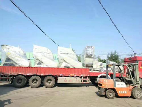在貴州銅仁市一電鍍園區中有多家客戶在我司訂購了玻璃鋼離心風機,大部分采購的都是常規類型的風機,有些特殊的加工廠,如鍍鉻廠在生產過程中會產生含有鉻酸的廢氣。雖然鉻酸的酸性不是很強,但是鉻酸對于玻璃纖維有很強的的腐蝕性,所以在生產時需要使用一些棉紗類的產品代替玻璃纖維。下面是貴州銅仁電鍍園區玻璃鋼離心風機發貨圖。