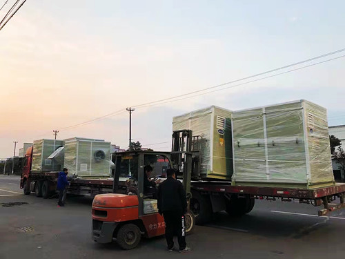 7臺裝有隔音箱的玻璃鋼離心風機發(fā)往河北石家莊