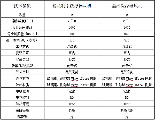 c、風機的操作溫度范圍是20℃-80℃,耐溫等級一般,常規材料的玻璃鋼離心風機符合使用標準。這里需要注意如果風機的操作溫度接近80℃或者超過80℃則推薦選擇玻璃鋼耐高溫風機