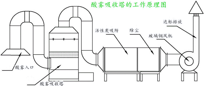 什么是酸霧吸收塔,顧名思義將廢氣中的酸霧、酸性分子吸收從而達(dá)到凈化廢氣的效果,常與玻璃鋼離心風(fēng)機(jī)搭配使用。也被稱作名酸霧凈化塔、酸霧洗滌塔等,常見的酸霧吸收塔以玻璃鋼酸霧凈化塔與pp酸霧吸收塔為主。