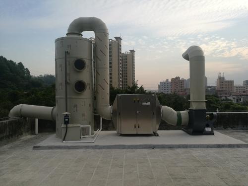 7、經(jīng)由玻璃鋼離心風(fēng)機(jī)送至煙囪管道排至大氣環(huán)境中。
