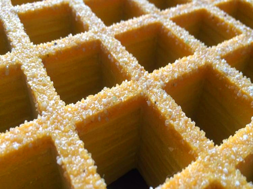 所謂磨砂工藝就是在格柵板拉紗工序完成時(shí)在格柵表面添加一些細(xì)砂石,然后再加熱使板材成型。這樣成型的玻璃鋼格柵板表面就會(huì)形成一層磨砂的防滑面。